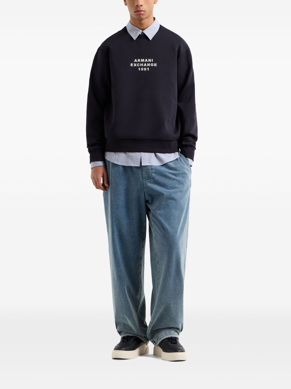 Armani Exchange logo-detail sweatshirt Highlights navy blue crew neck long sleeves ribbed trim Composition Cotton...