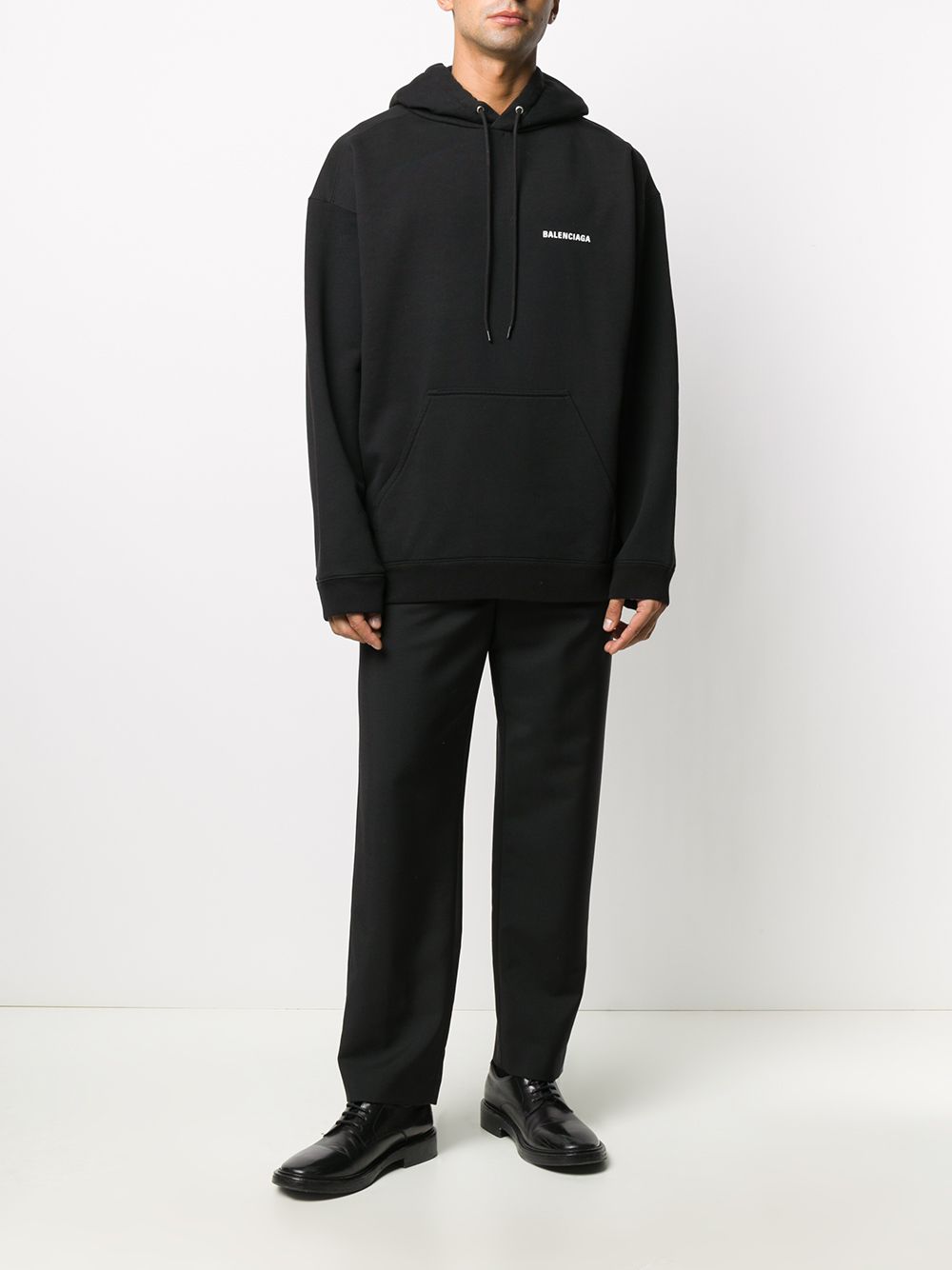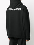 Detailed logo-print black hoodie