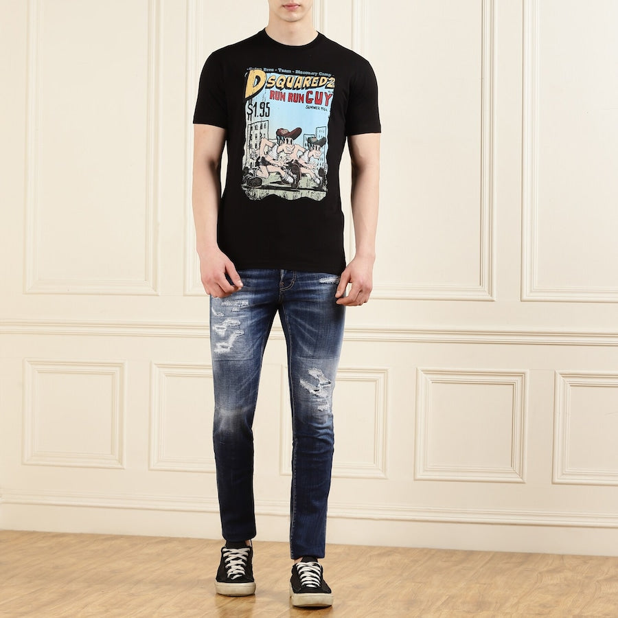 Black Cartoon Print Cool-Fit T-shirt